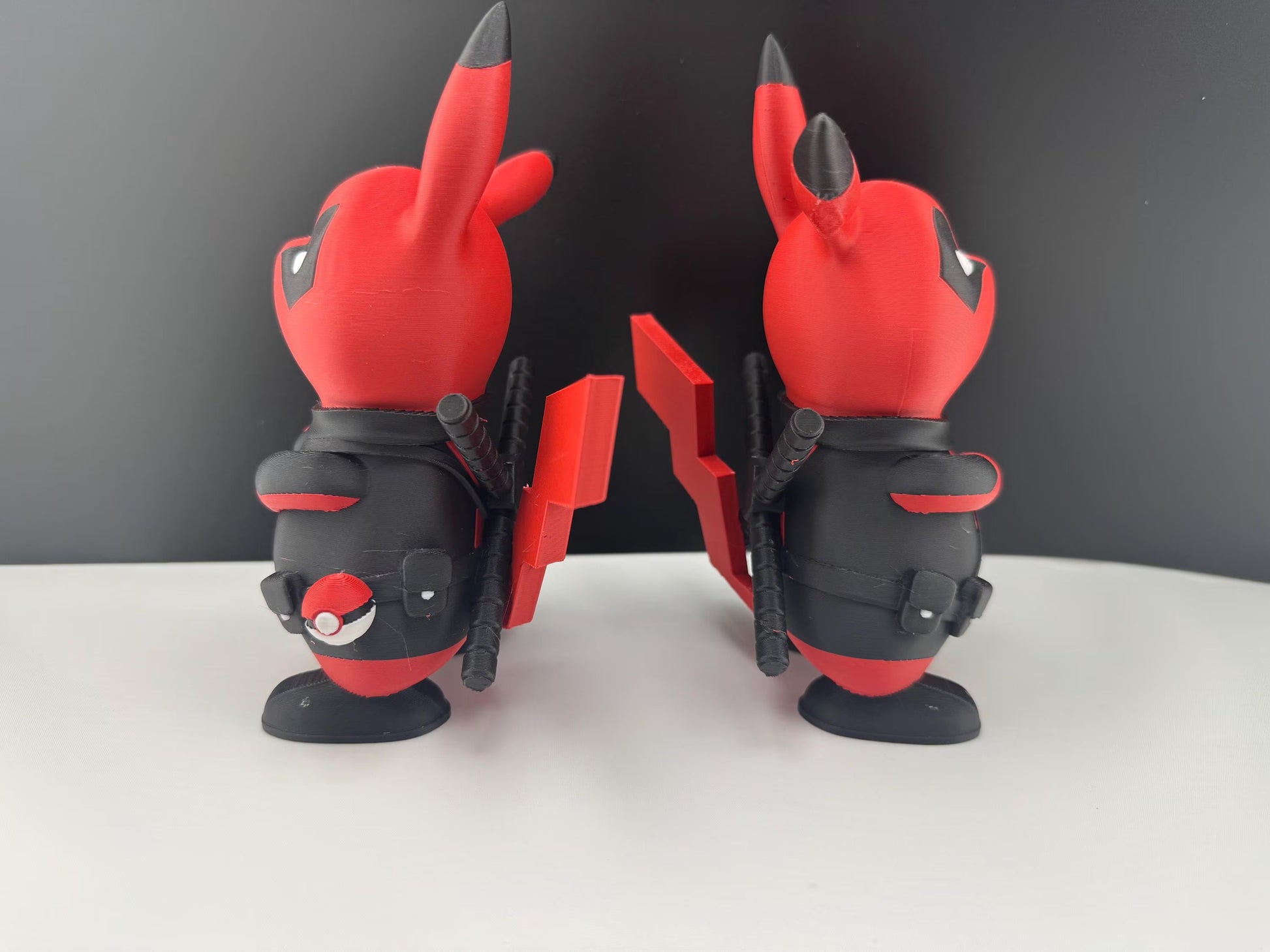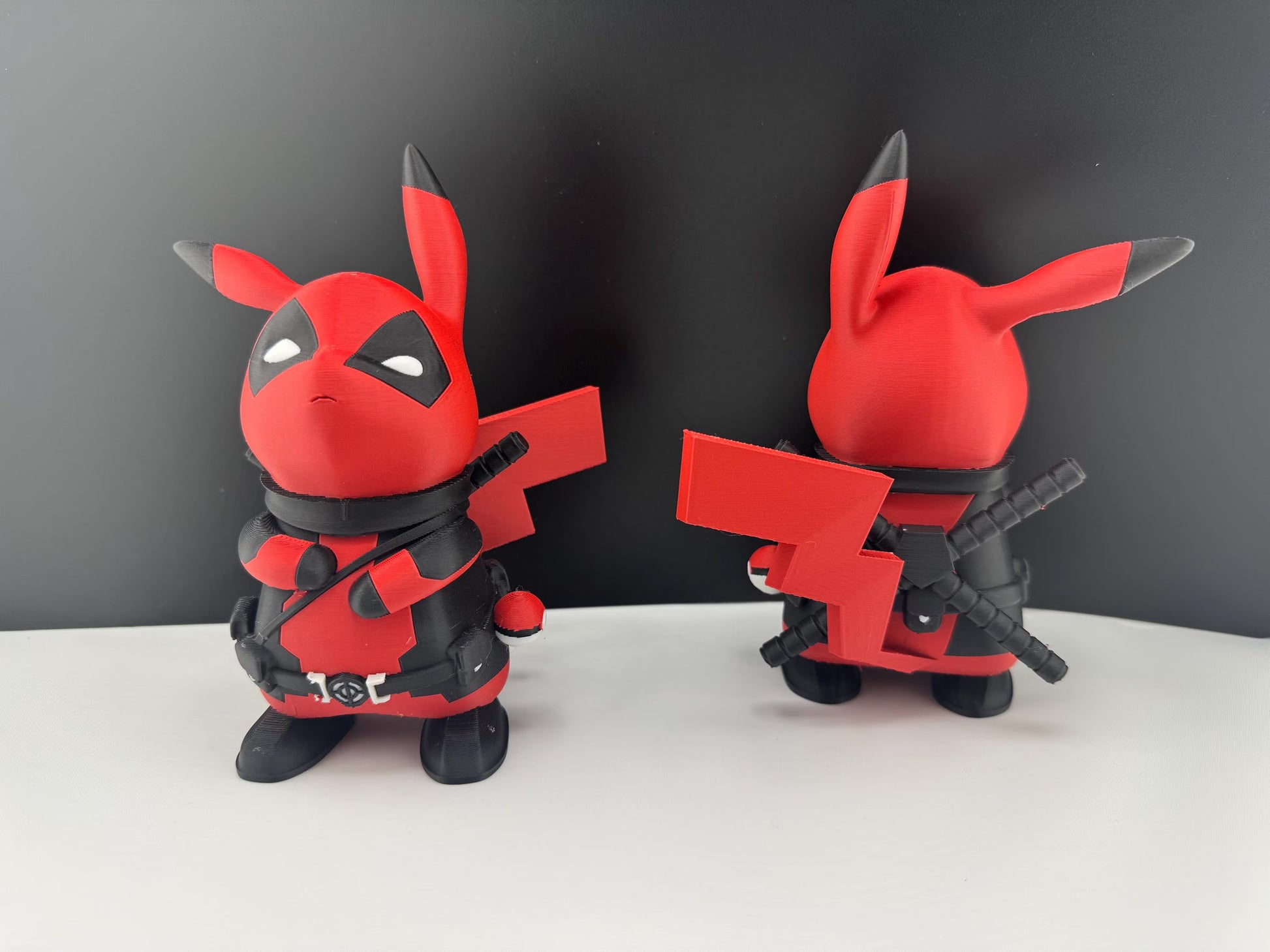 Meet PikaPool, the ultimate crossover between two of your favorite characters: Pikachu and Deadpool! This unique 3D printed figurine is perfect for fans of both the Pokémon universe and Marvel's wisecracking anti-hero.